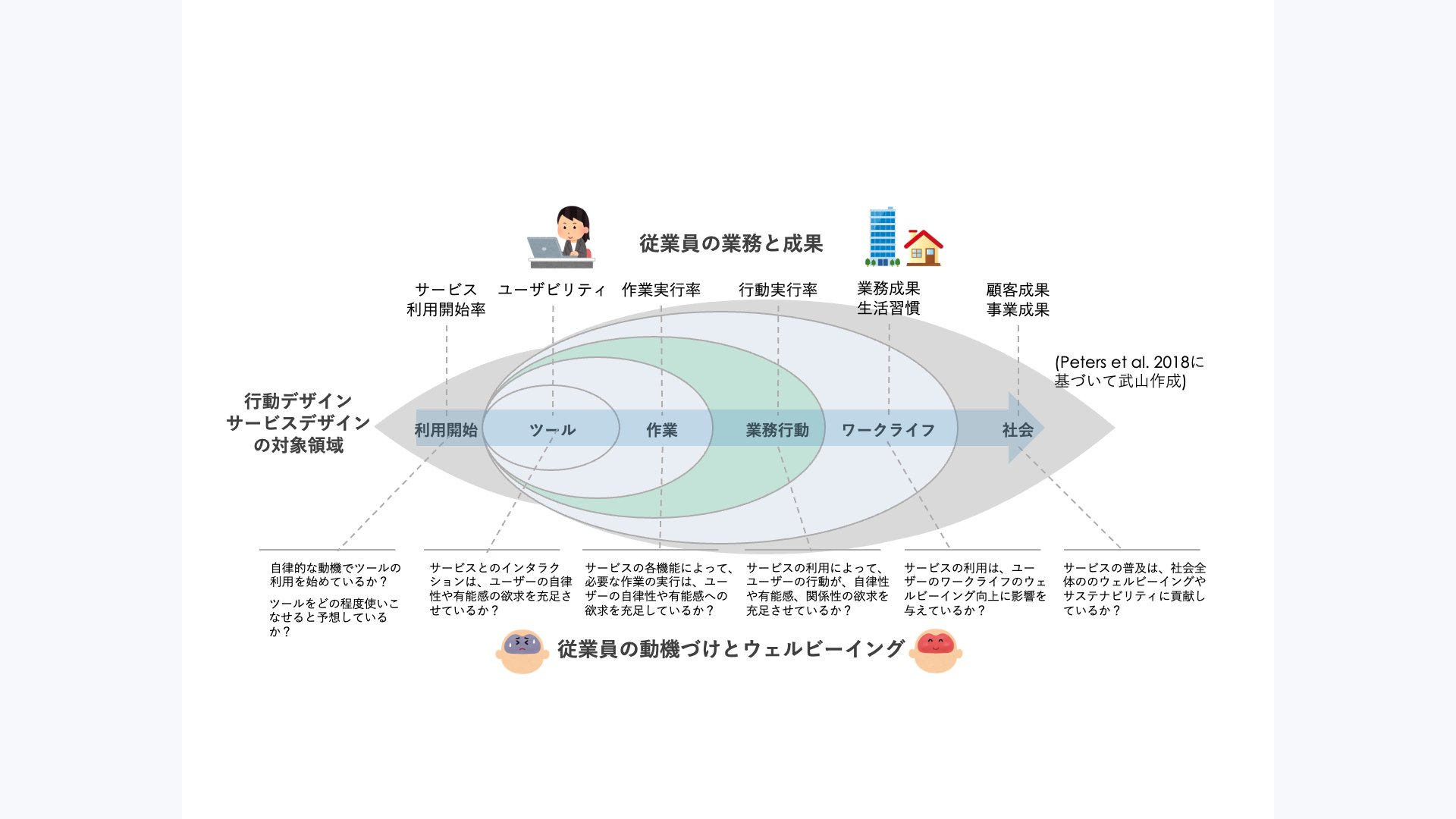 経済や社会が成熟し、人びとの幸福をGDPや所得だけではなく、ウェルビーイングによって評価する動きが世界的に広がっている。特に日本では働き方改革やコロナ禍への対応から、従業員のウェルビーイングとパフォーマンス(生産性等)の両立と向上が大きな課題となっている。本研究では、行動デザインとウェルビーイングのデザイン、サービスデザインのアプローチを効果的に組み合わせることで、個人と組織のウェルビーイング充足を促進する新たな統合的デザイン手法を開発する。