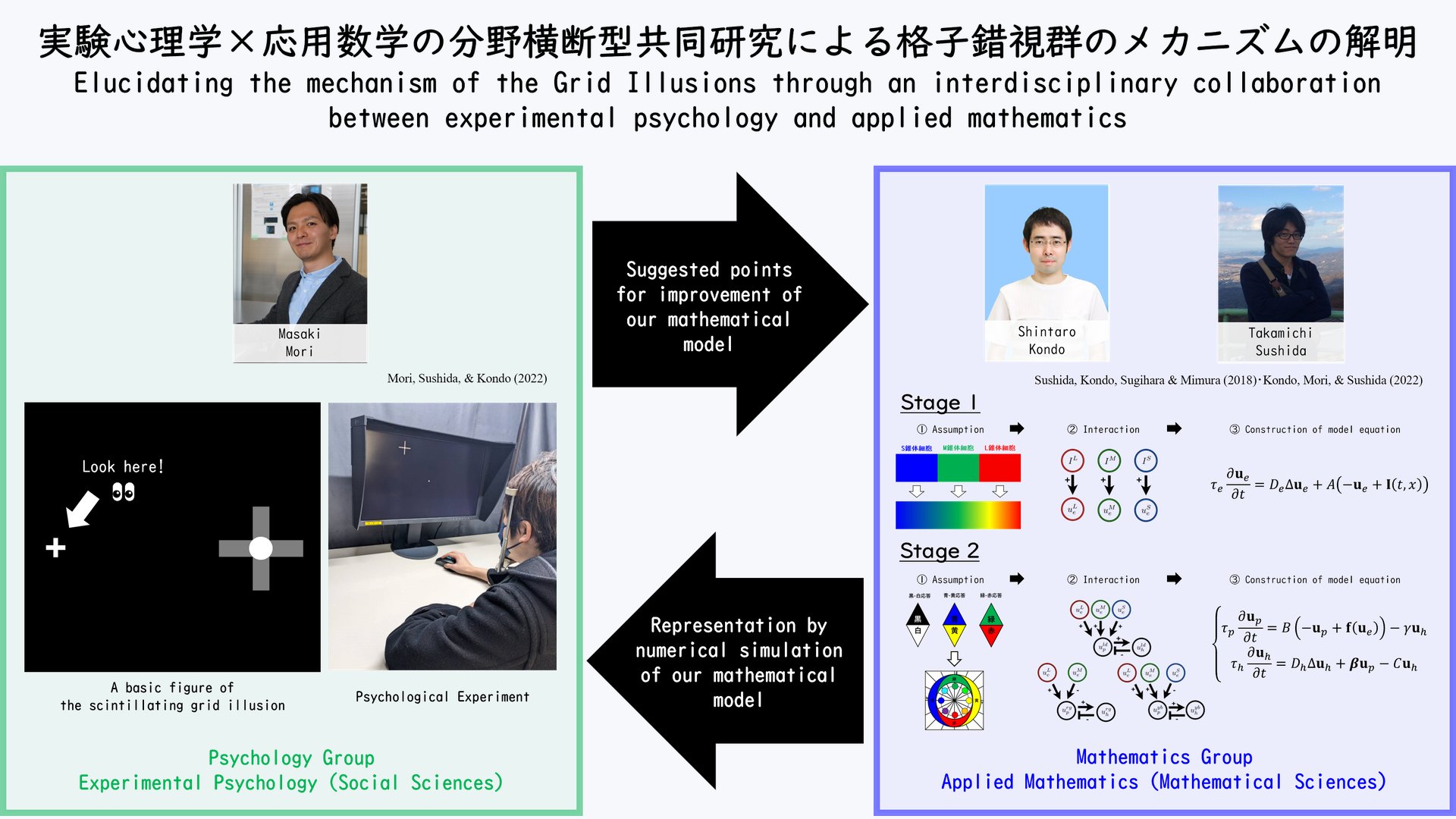 Mori, M., Sushida, T., & Kondo, S. (2023). Spatial properties of scintillating grid illusion by visual experiment and numerical simulation. Social Science Research Network, 1-45. (under review)