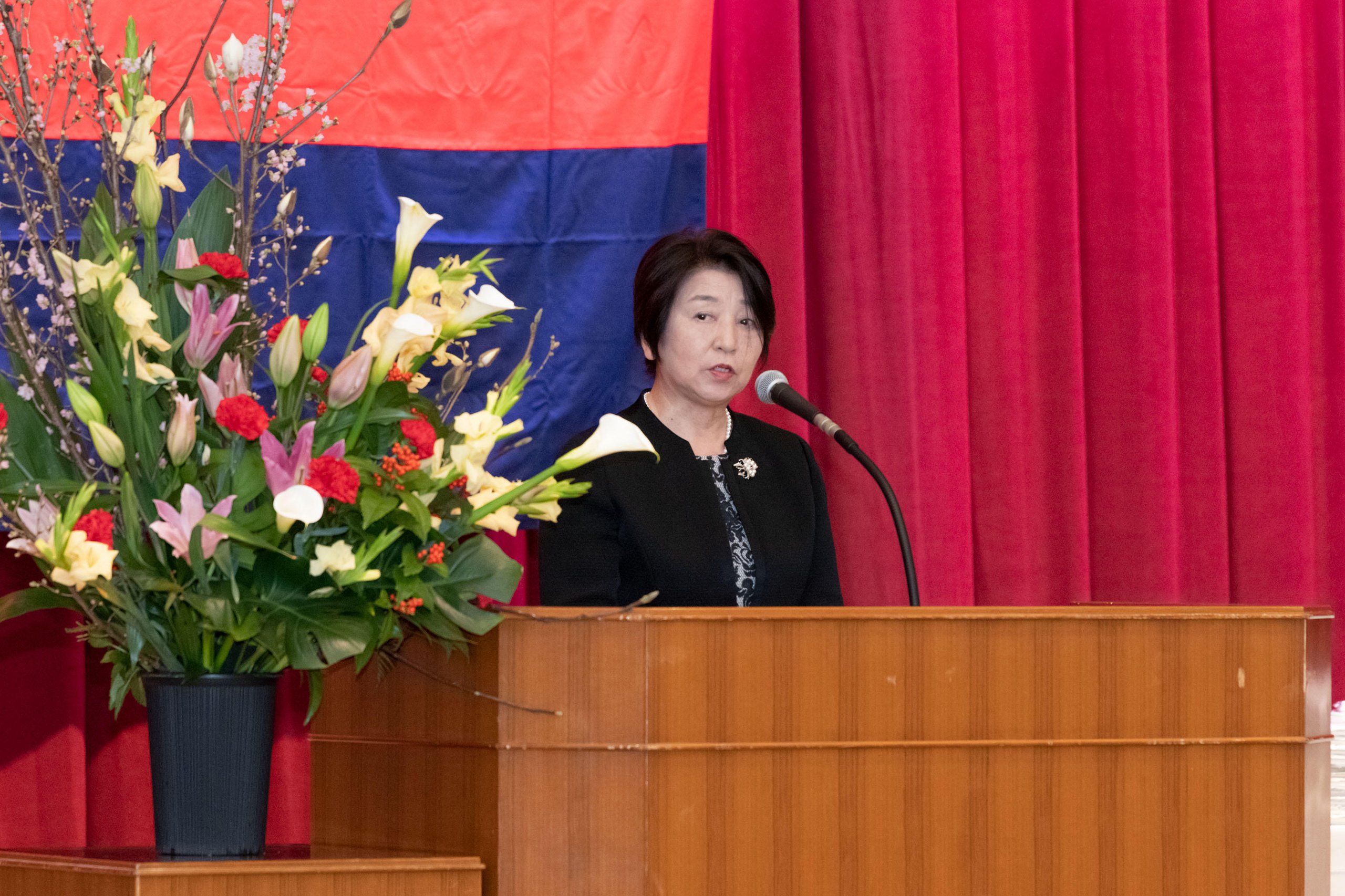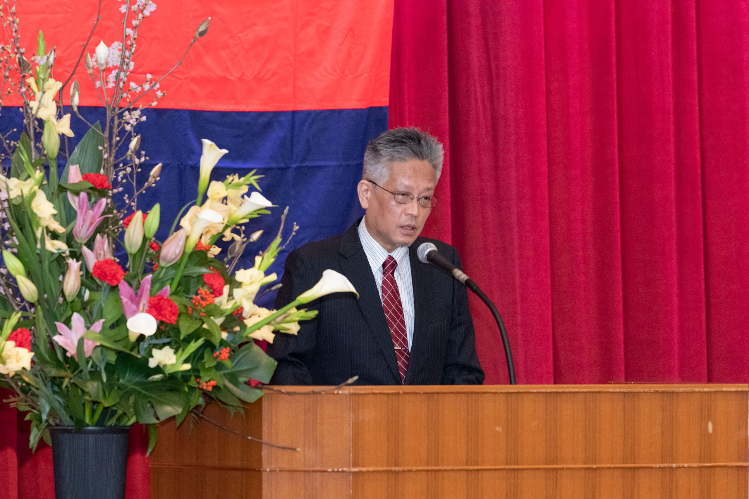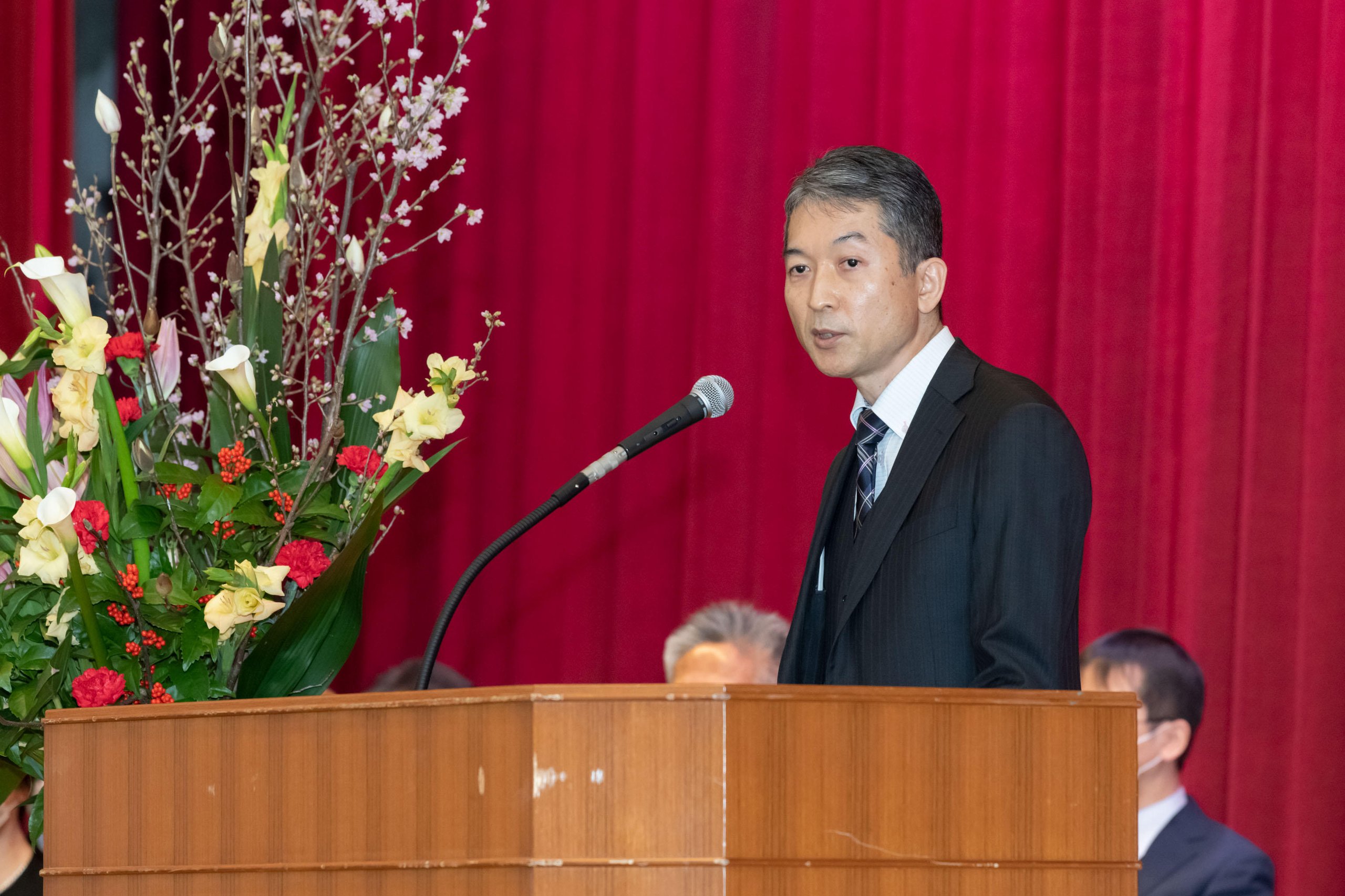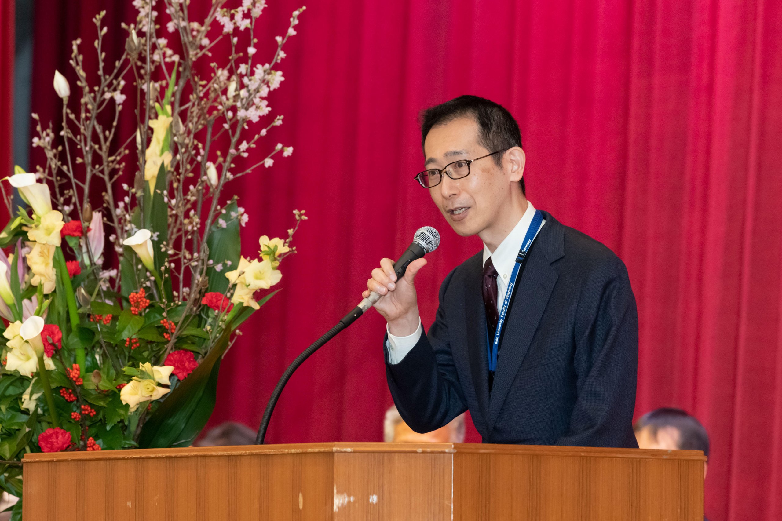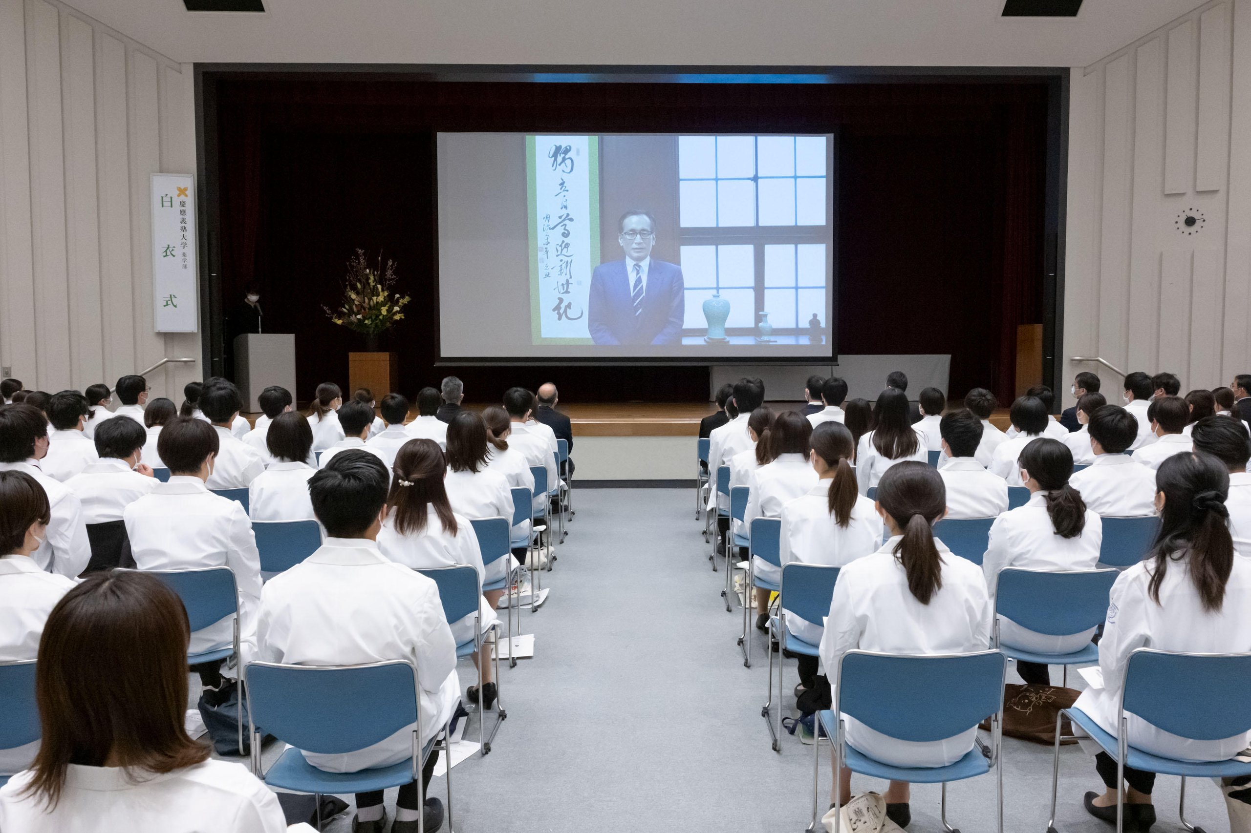 式典では、三澤 日出巳 薬学部長による開会の挨拶に続き、金井 隆典 医学部長ならびに武田 祐子 看護医療学部長から医療人としての思いの籠った「餞(はなむけ)の言葉」が贈られました。また大谷 壽一 大学病院薬剤部長と山浦 克典 薬学部附属薬局長からは、学生を受入れる立場で、病院および薬局それぞれの実習における心構えについて訓示が述べられました。