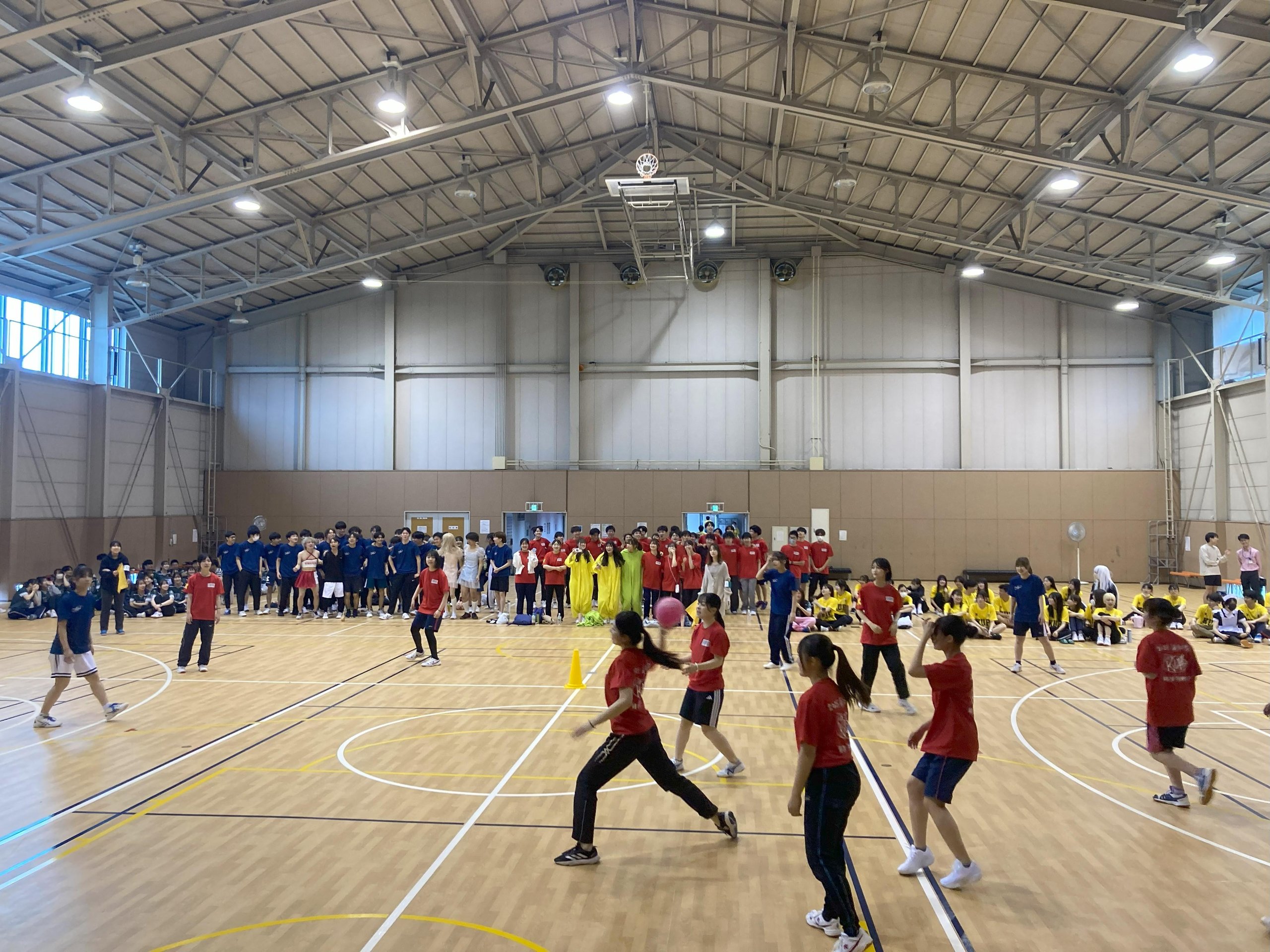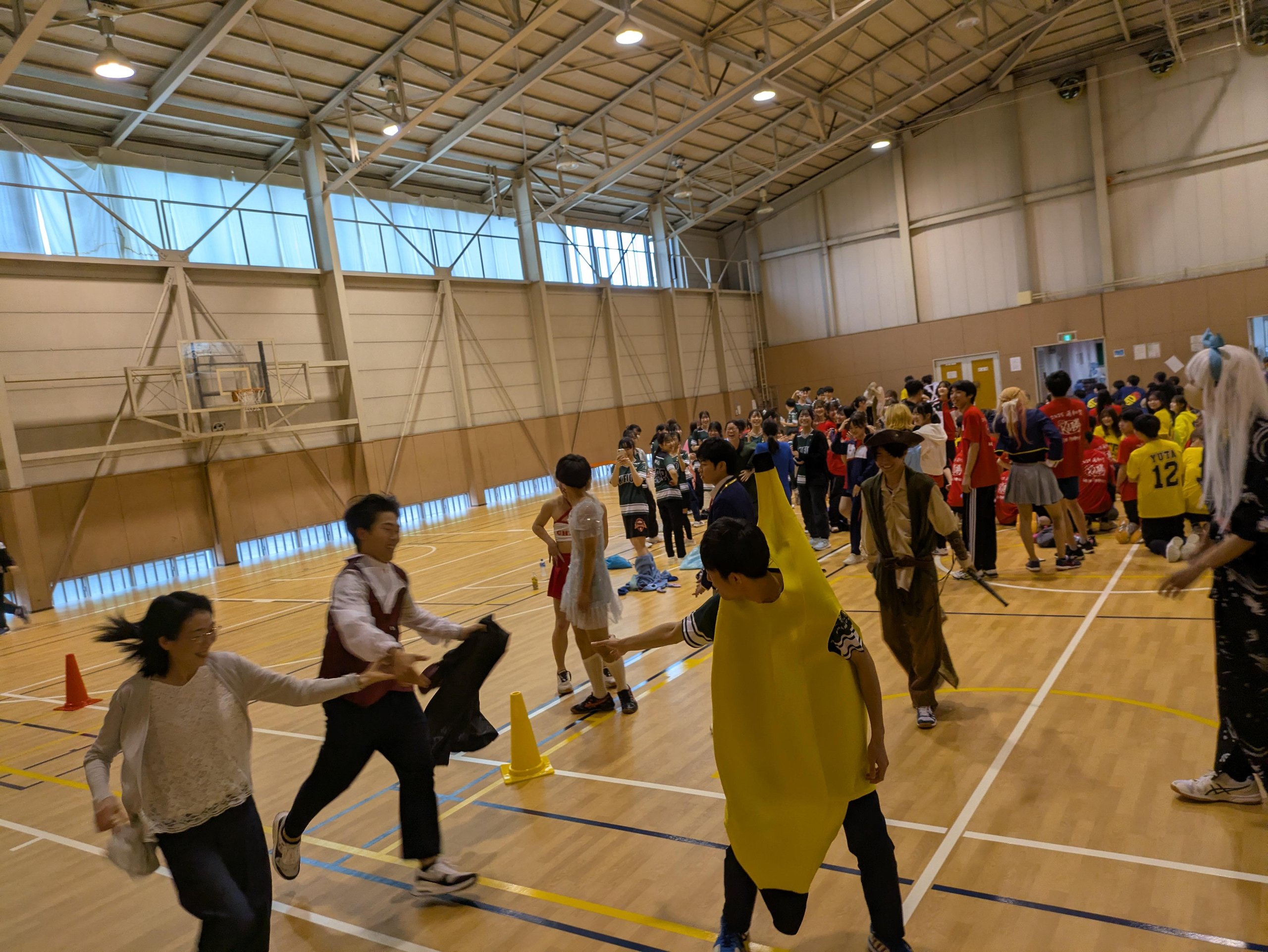 クラス対抗で優勝を目指して、作戦会議や円陣を組み、応援にも熱が入って大盛り上がり。仮装リレーの借り物競争では先生も借り出されていました。興奮冷めやらぬ中、最後はみな笑顔で集合写真を撮り、これからの学生生活を支え合う仲間たちとの親睦が深まった有意義な1日となりました。