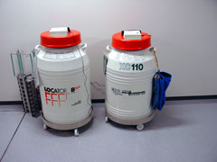 超音波を利用して液体窒素の液面を感知する監視装置をとりつけた、断熱性を有するアルミニウム凍結保存容器です。