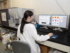 高速の高感度定量、短時間の多成分一斉分析、定性と定量の同時分析が可能です。