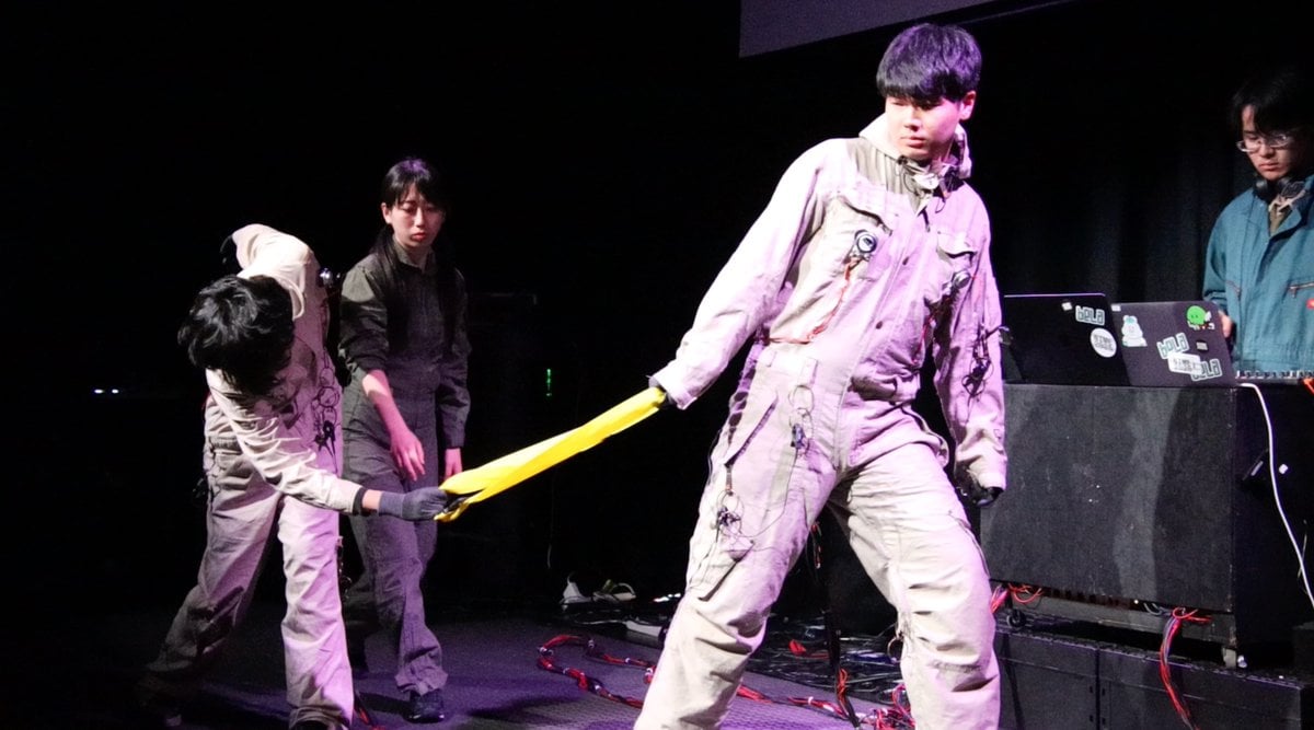 このたびNIME2025にてHighly Commendedに選出いただき、大変光栄に思います。本研究は23年度の学部生時代に卒プロとして取り組み始め、過去のORFなどでも鑑賞いただいたパフォーマンス作品でした。2年前からの制作の日々が報われて嬉しく思います。研究会の藤井先生、魚住先生、共同制作者兼パフォーマーの神田美紀さんをはじめ、アーティストの小林万葉さんや研究会のメンバーを中心に、構想の段階から学会当日まで様々な方からご指導・ご協力いただきました。本作品の制作に関わり、ご鑑賞いただいた皆様に心より感謝申し上げます。