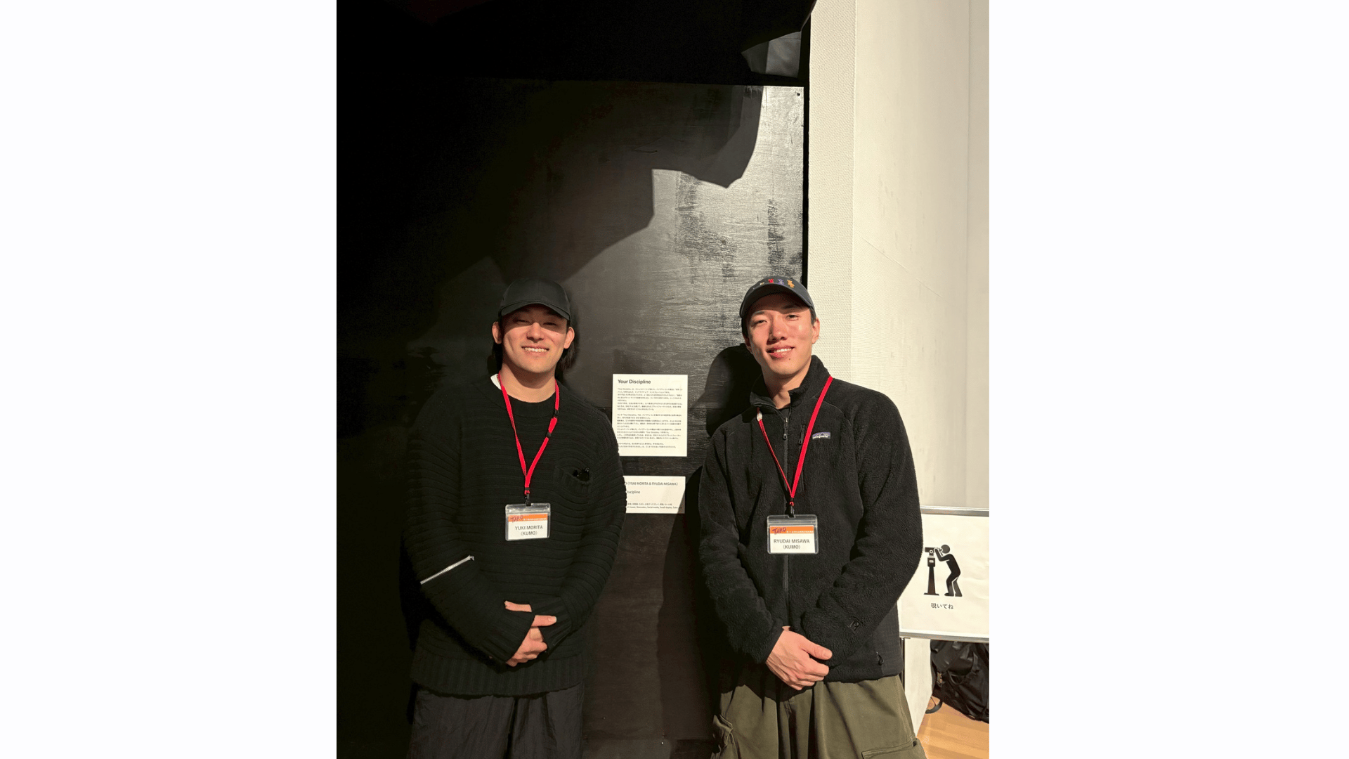 KUMO(YUKI MORITA & RYUDAI MISAWA)の作品「Your Discipline」は、規律・規範の在り方をテーマにしたインタラクティブ・インスタレーションです。かつて学校や社会制度が担っていた規律の形成が、今日ではSNSやAIといったプラットフォームへと移行しつつある現代において、自分たちがいかに自発的に従属し、情報を消費し続けているかを身体的・体験的に問い直す本作が評価され、入選を果たしました。
