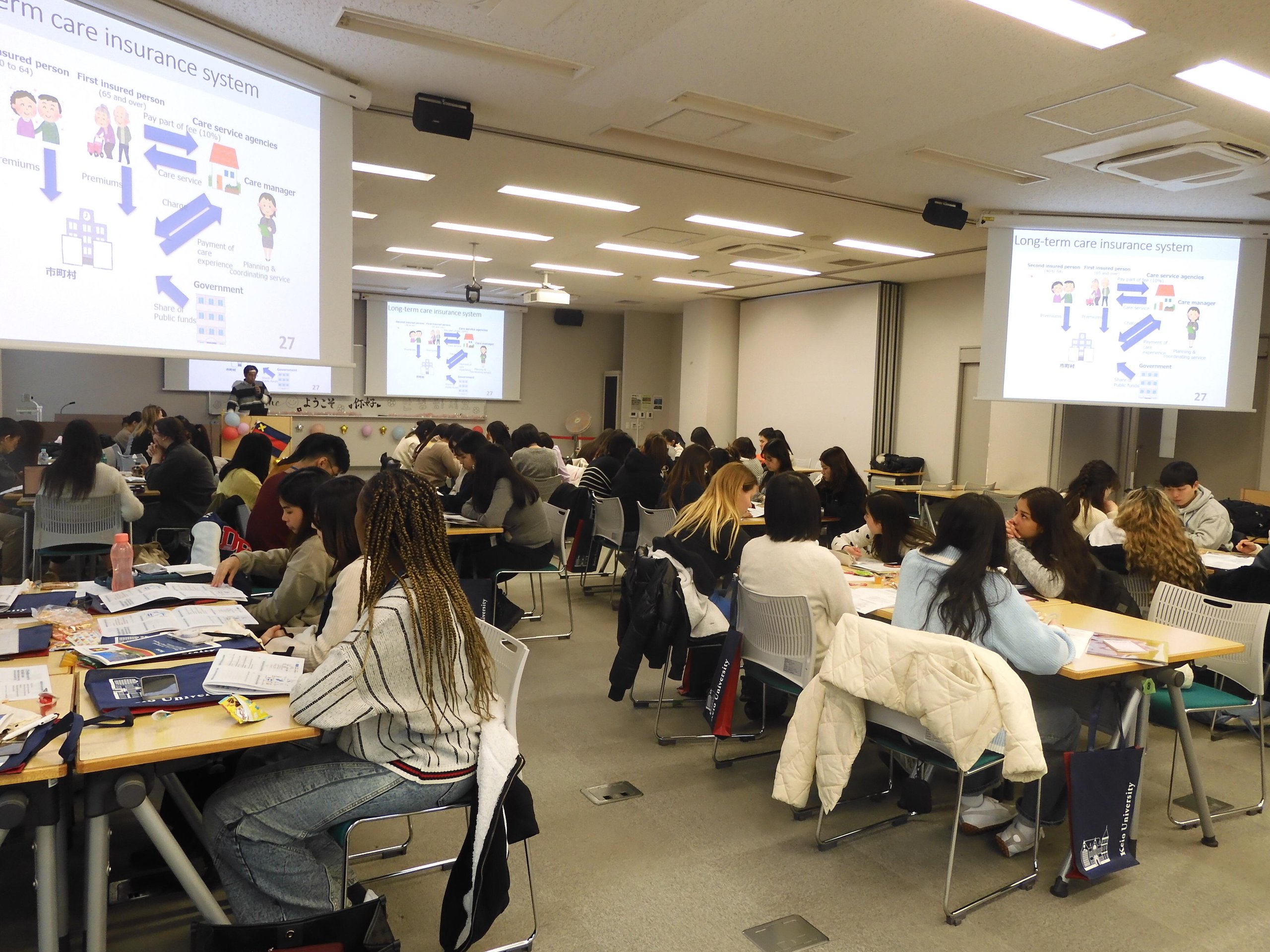 看護医療学部では、2024年2月5日(月)〜9日(金)、"Global Leader Training and International Exchange Program for Nursing Students"(科目名:「国際看護実践Ⅰ(国内)」)が開講されました。これは2017年から開いている短期留学受け入れプログラムで、藤屋リカ准教授のリーダーシップのもと、科目の担当教員が中心となって計画・運営しています。当初の参加校は、復旦大学(中国)、乙支大学(韓国)、サフォーク大学(英国)、慶應義塾大学の4カ国でしたが、その後ワシントン大学(米国)が、そしてイリノイ大学(米国)、ピッツバーグ大学(米国)、シンガポール国立大学がこの輪に加わりました。今回は、復旦大学、乙支大学、サフォーク大学、ピッツバーグ大学、シンガポール国立大学から学生さん、教員の方々が参加してくださいました。慶應の学生・教員を含め、約50名となりました。初日の2月5日はまさかの大雪警報。一部スケジュールを前倒しするなど大変でしたが、シンガポール国立大学の学生さんたちにとっては初めての雪。大興奮でした。