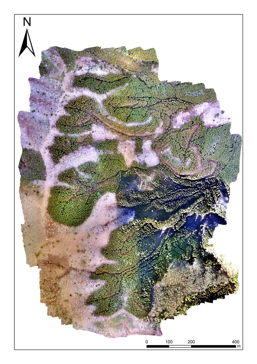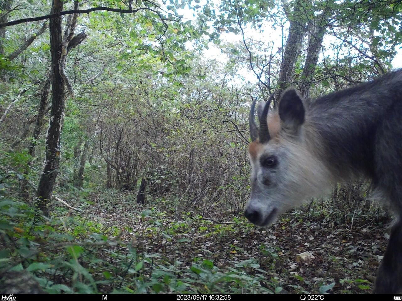 図1が1月に空撮した画像を合成したものであるが、緑に見えるのが植林地、白や茶色に見えるのが落葉広葉樹林である。両者のコントラストがよくわかる。哺乳類については、林内に自動撮影カメラを設置し、撮影された画像から種の判別を行ったが、図2にあるような特別天然記念物に指定されているニホンカモシカ、ニホンジカ、ニホンアナグマ、ニホンノウサギなど合計11種が撮影された。以前ツキノワグマが撮影されたことがあるということだが、昨年度は確認できなかった。鳥類についてはクロツグミ、ヤマドリ、センダイムシクイなど、36種が記録された。鳥類については繁殖期の調査は十分にできていなかったので、今後さらに種数は増えると考えられる。昆虫類についてもまだ限られた調査しか実施できていないがスジクワガタなど47種を記録した。これらの調査は2024年度も継続する予定で、このおかしら日記が公開される直前の週末に調査を実施したところである。
