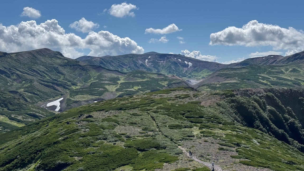 大型バスをチャーターして主に旭岳の麓を中心にあちこち回ったが、比較的アクセスがしやすい旭岳にも登ってきた。私が企画する特別研究プロジェクトでは、学生が個人かグループで自分のテーマを設定し、現地を訪問中にそれぞれ調査を行う。哺乳類や昆虫を見るためには夜間に調査が必要な場合もあるし、鳥類ならば早朝が適している。現地でそれぞれ生き物を探しに行くことも多いのだが、今回はヒグマの生息地ということもあり、必ずグループで行動し、夜間と早朝の調査は断念せざるを得なかった。