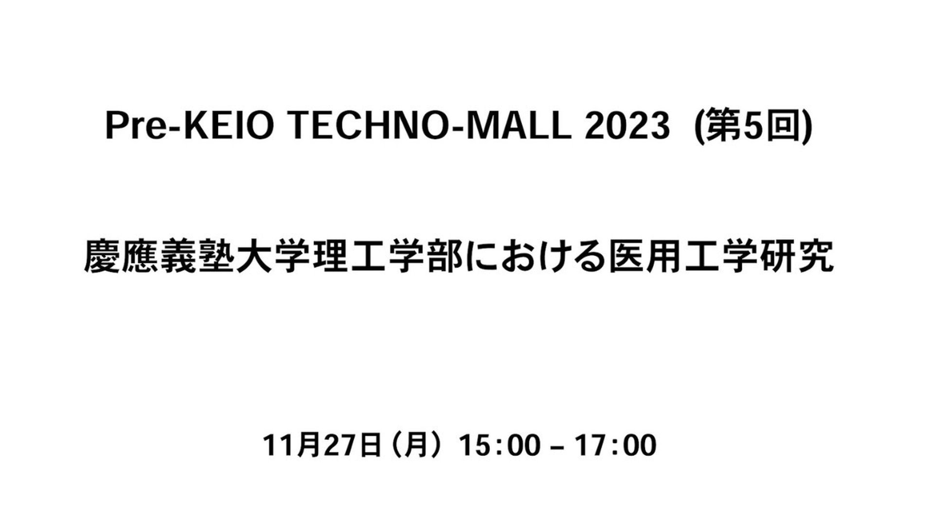 Pre- KEIO TECHNO-MALL 2023(第5回)「慶應義塾大学理工学部における医用工学研究」