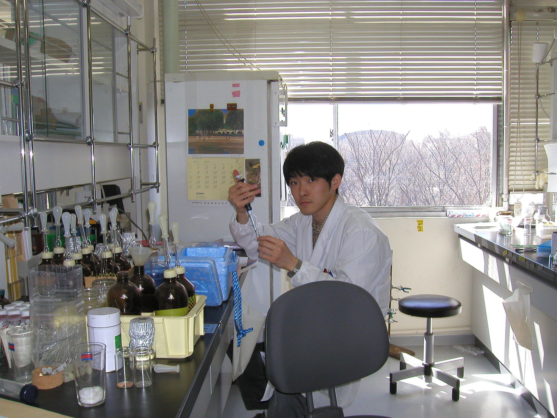3年生末には配属される研究室が決まり、私は太田・宮本研究室で、ある酵素を大腸菌で効率よく生産させるように遺伝子を組み替える研究をすることとなりました。ここでもこれまでの例に漏れず、自分が貰った研究課題にのみ全力投球というわけではなく、定期的に行っていた文献紹介では、研究室の研究にあまり関係のないアルツハイマーや統合失調症の研究論文を、自分の興味の赴くままに紹介したりしていました。このようにあまり優等生とは言えない私にも、根気よくご指導してくださった太田先生、宮本先生には本当に感謝しております。また、山中湖での合宿や、研究の合間の同級生との雑談もよい思い出となっています。