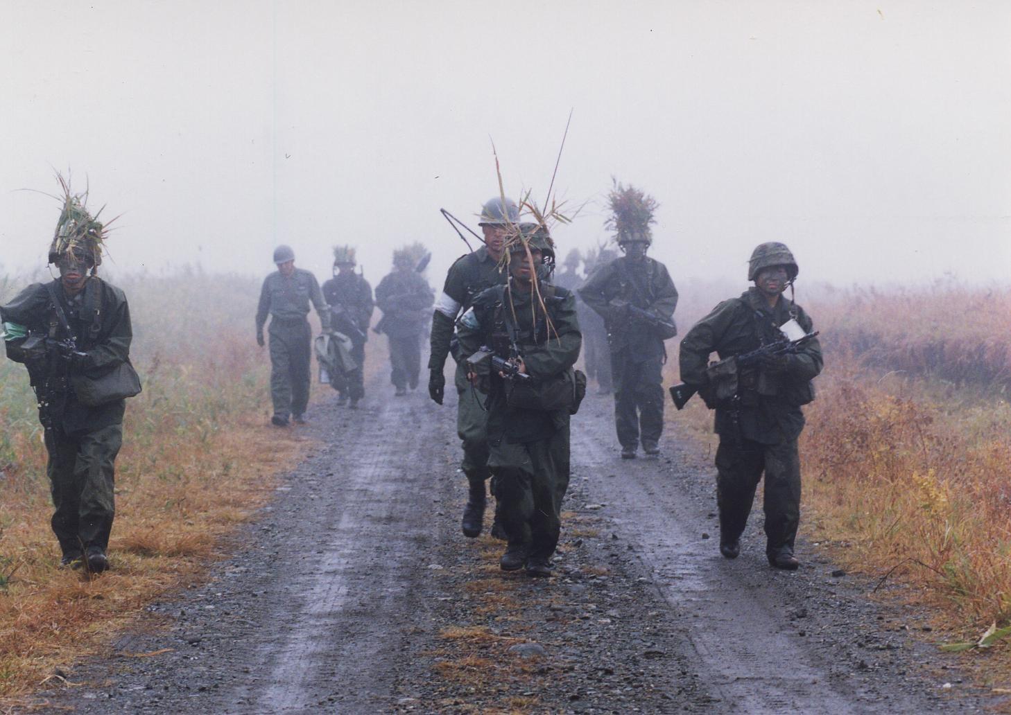 就職活動はあまり熱心に行った記憶がありません。地元のNEC関係の会社に推薦が決まっていたのですが、4年生でオペレーションズ・リサーチについて研究している小澤正典先生の研究室に入ったので、自然と自衛隊のほうに目が向いたのでしょうか(ORはWWⅡにおいて米英軍が作戦の研究のために使われた数理的アプローチに端を発します)。陸上自衛隊の幹部候補生の試験をうけて、自衛隊に入隊しました。1年目は福岡県久留米市にある幹部候補生学校で、自衛官・幹部としての教育・訓練を受けました。学生の頃にあまり運動をしていなかったのでかなり不安もありましたが、同期に支えられて、なんとか乗り切りました。規則正しい生活、野外訓練や体力錬成、戦術・戦史・防衛基礎学。どれも企業の新人研修では体験できないもので、慣れてしまえば楽しいものです。