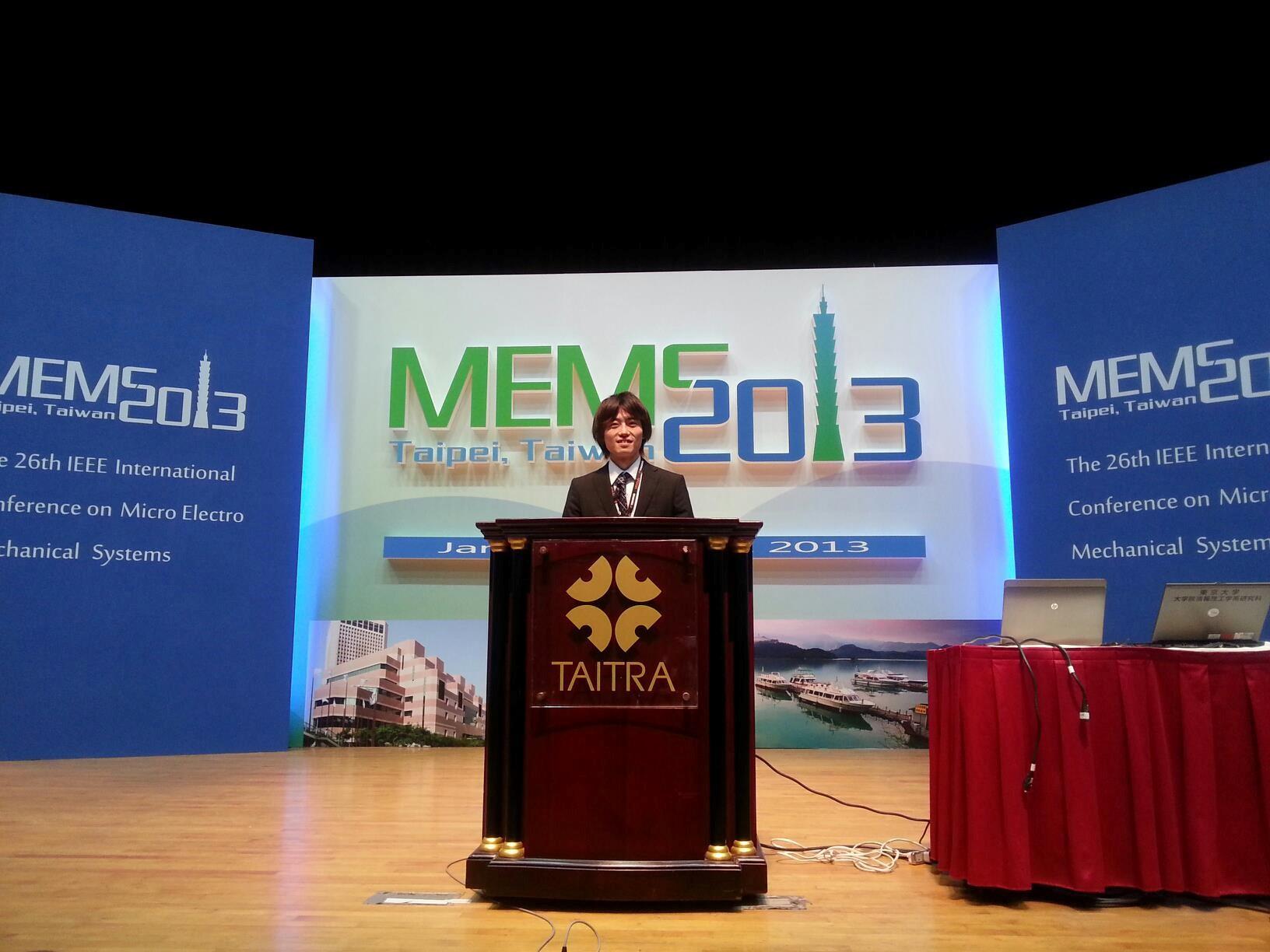 論文を読み漁り、夜通し実験にふけり、徒歩10分の自宅に帰るのも億劫なため、研究室の椅子を並べて寝るという生活を続けること約半年。その年は台湾で開催される国際学会MEMSに投稿した論文要旨が採択され、参加が決定した。しかも口頭発表。日本語でもろくにプレゼンテーションをした経験もない中、業界の重鎮を含む約700人の聴衆が鎮座する前で、英語によるプレゼン。さらに私を縮み上がらせたのは会場の大きさだ。もはや奥の人が誰だか分からない。