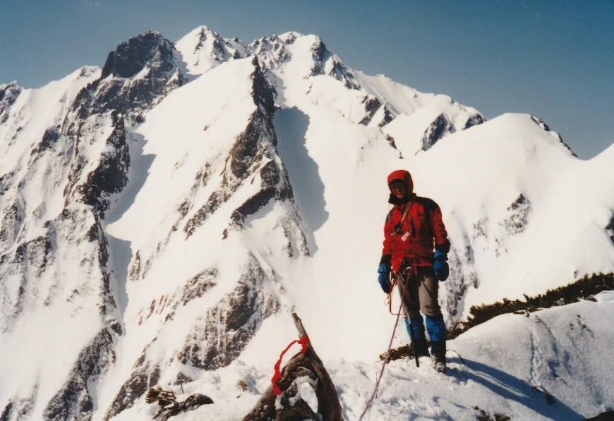 慶應普通部入学から6年後、理工学部の第三系、さらに応用化学科に進学することになりました。本当は生物に興味があったのですが、理工学部にはいわゆる生物学科はなく、一番近いのは化学かな~、くらいの気持ちで選びました(いいのか、そんなことで・・・)。本人が気になっていたのはサークル活動。当時、なぜだか冬の、それも雪山を登ってみたい!という思いに取りつかれて、全く経験もない山岳部の扉を叩き、6月には訳も分からずに北アルプスの劔岳に黒四ダムから登ることになったのでした。縦走に出てはバテ、岩に登れば落っこちて、問題部員ではありましたが、春夏秋冬、年間100日間をアルプスの稜線で過ごした4年間は最高でした。