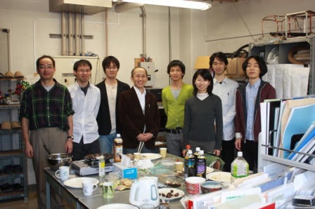 研究室での行事の1つに先生方の誕生日の際には学生がケーキを作り、祝うというものがありました。佐々田先生の「料理のうまさと実験のうまさには相関がある」という言葉を信じて、私たちは一所懸命にこれに取り組みました。