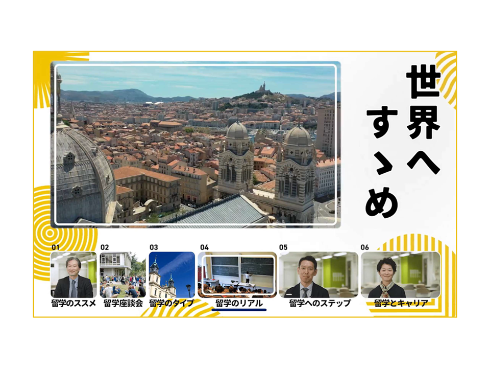 留学プログラムの特徴やキャリアについて短い動画でわかりやすく紹介しています。自分の見たいコンテンツを選択しながら視聴できます。