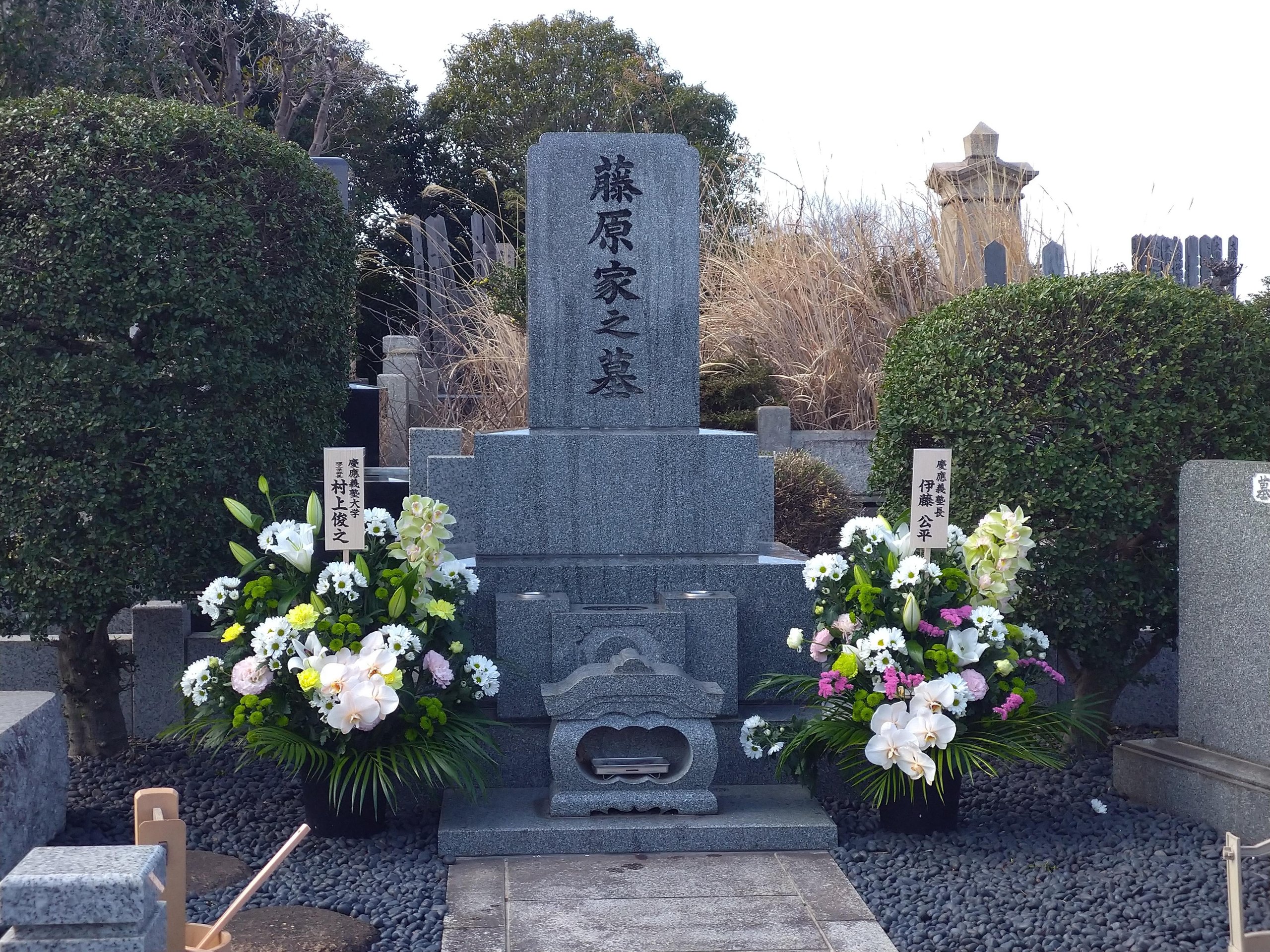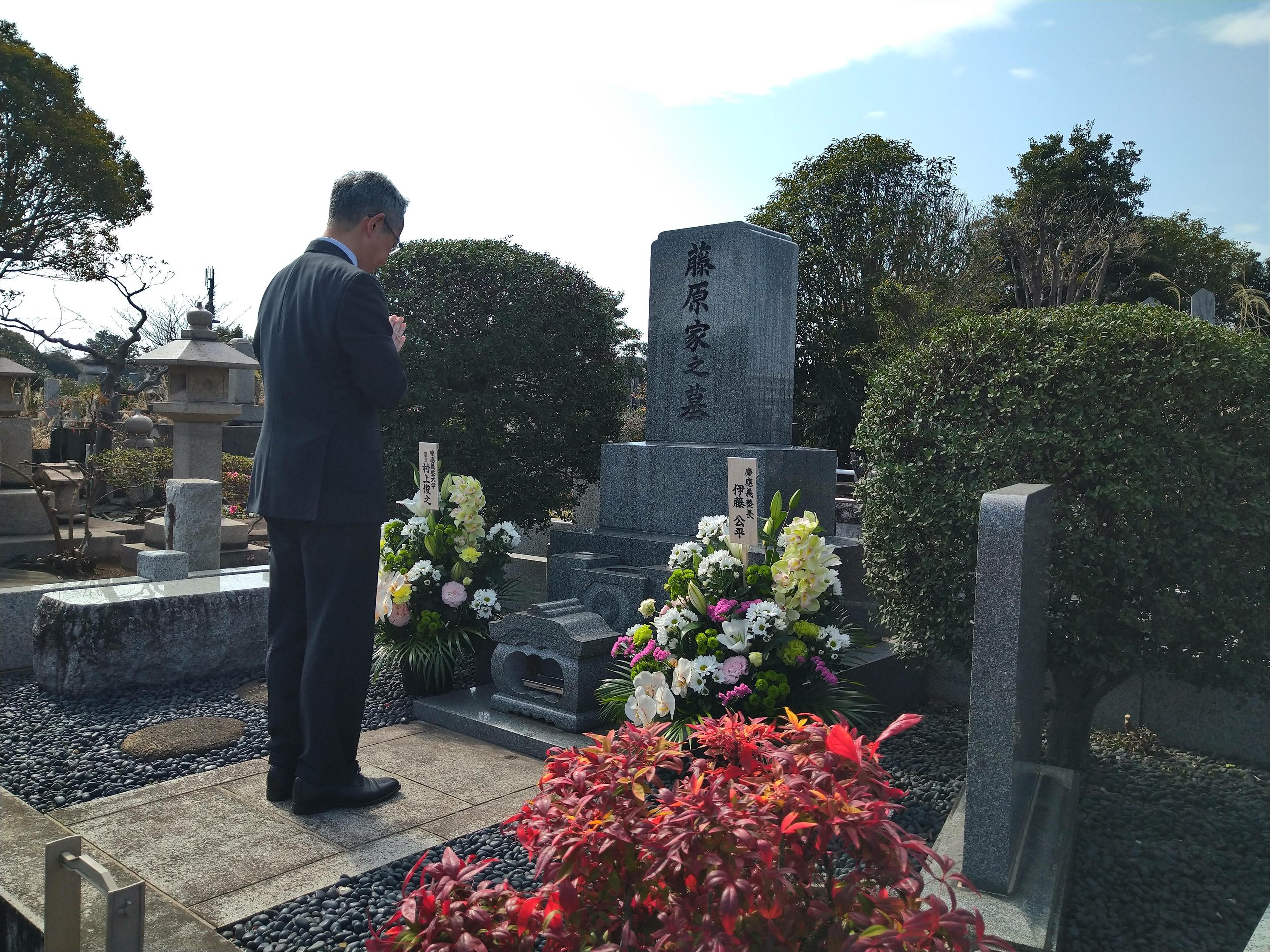 理工学部の前身である藤原工業大学の創設者・藤原銀次郎氏の命日にあたる3月17日(日)、總持寺(横浜市鶴見区)にある氏の墓所に墓参いたしました。
