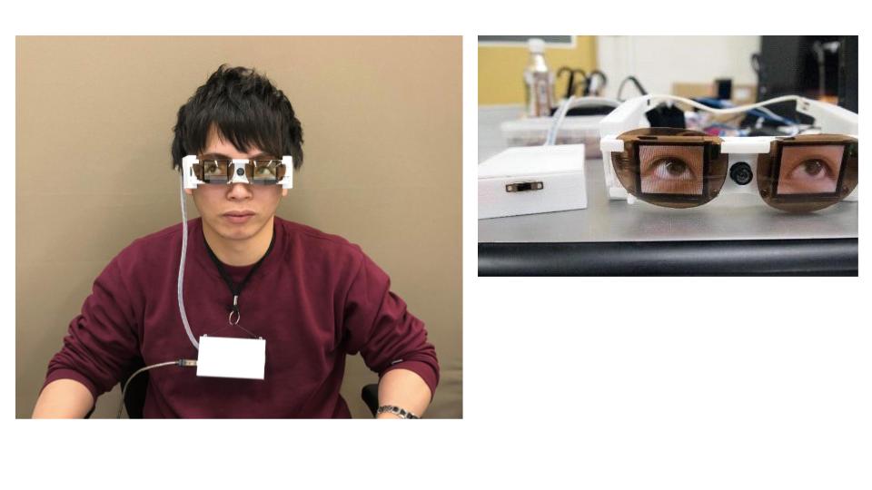 そこで感情を豊かに表現する「目」に着目し、目のコミュニケーション機能を代替する装置「Agency Glass」を開発した(図1)。付属のカメラが相手の顔と視線を捉えて、それに合わせて自動的に目を動かすため、目の不自由な人が装着すると、目が自然に動いているように見えて違和感が軽減する。また、目が動く時に振動が顔に伝わるので、着用者はそれに合わせて顔の向きを変えることも可能だ。映像が見えるわけではないが、目の不自由な着用者でも会話中の視線を会話対象に合わせることができるようになり、よりスムーズな会話が実現できた。