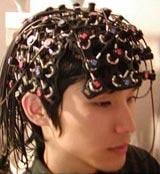 私の研究室は生体計測をやっています。計測には電気生理的な計測もありますし、力を測ったり、長さを測ったりすることもあります。今日お話する脳の活動を測ることもあります。私たちの何気ない動きには脳はほとんど活動しません。それはそうですよね、歩くときにいちいち右足を出して、体重を右足に乗せて、右足のつま先で地面を後に蹴りながら、次に左足を出して、...なんてことを考えていたら電車に乗り遅れてしまいます。歩行はほとんど反射です。さて、皆さんは右手で3拍子、左手で2拍子を打つことができますか?ピアノを弾く人はできるでしょう。3連符を弾いている感じです。ドラムを叩く人もできるでしょう。こういう人は右手で3拍子、左手で2拍子を打っても大脳はほとんど活動しません。しかし、ピアノやドラムをやらない人は、一生懸命考えないとずれた拍子は打てません。そこで、脳の血流を頭皮の上から測る、左下の図1にある光トポグラフィという道具を使うと、前頭葉とよばれる、意思をつかさどる部位が活動していることがわかります。右下の図2を見てください。これは右手も左手も3拍子で叩いているときの活動状態です。ほとんど活動していませんね。簡単な動作だからです。しかし、右手で3拍子、左手で2拍子になると、手の動かし方を一生懸命考えるので右下の図3にあるように前頭葉が活動してきます。でも、この運動を1週間位訓練すると慣れてしまって、前頭葉が活動しなくなります。もう歩くのと同じ反射で両手が動くようになってしまいます。ちょっと前までは、脳機能を測定するというと、脳波、脳磁図、fMRI(機能測定用磁気共鳴画像装置)、PET(陽電子放出断層装置)などしかありませんでしたが、いい計測装置ができると、もっといろいろな機能が測れるようになります。
