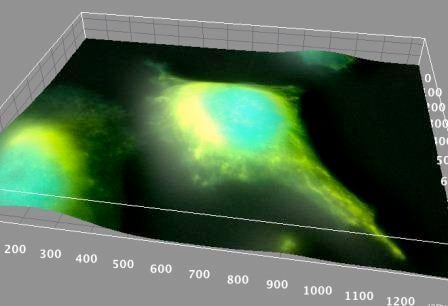 私の研究室では大きく分けて「数理モデルによる生命現象のシミュレーション」、「画像解析による細胞内環境の3次元構築(図2)」、「細胞の運命を操作する技術」の研究を行っています。今やすべての研究テーマにおいてコンピュータは必要不可欠となっています。シミュレーションや画像解析はコンピュータの得意分野なので当然ですが、最近では生物学実験にもコンピュータを活用して正確な実験の制御、実験の自動化を進めています。高精度な実験は実験データの定量化という視点から今後非常に重要な技術となります。