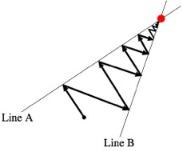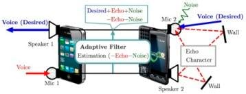 こうした科学技術が、実は古代に築かれた学問を基に成り立っていると言ったら信じるだろうか。このことが全くのデタラメでないことを実例で示したい。図1を見てみよう。適当な場所からスタートして直線Aに垂線を引く。次に、垂線を下ろした点から直線Bに垂線を引く。この垂線を下ろす操作を2つの直線に対して交互に行なうことによって、2直線の交点が求まることが分かるだろう。これは、20世紀を代表する研究者フォン・ノイマンが提唱した交互射影法の原理を分かりやすく描いたものである。垂線を引く際に無意識に使っている「直角」を初めとする幾何学の諸概念。これはユークリッドが著書「ユークリッド原論」にまとめた幾何学の体系によるものである。ユークリッド幾何学は、17世紀を代表する哲学者・数学者であるルネ・デカルトの著書「方法序説」に記されたデカルト座標(x-y座標)によって代数方程式と結ばれる。例えば、3変数x、 y、 z に関する3つの1次方程式からなる連立方程式を考えてみよう。各方程式を満たすx、 y、 zの集合は平面になることが分かり、3つの方程式に対応する3つの平面の交点が(存在すれば)連立方程式の解である。実際、交互射影法の原理は3つ以上の有限個の平面(4次元以上の場合、超平面と呼ばれる)に一般化され、高次元連立方程式の数値解法として画像復元を初めとする工学の諸問題に応用されてきた。フォン・ノイマンは2つの鏡を直線A、 Bのように並べた時に光の進路を眺めていて交互射影法のアイデアを得たと聞いたことがあるが、もし、デカルト座標が発見されていなかったとしたら、連立方程式の解法へと結びついただろうか。交互射影法のアイデアは、適応信号処理の標準アルゴリズムである学習同定法(南雲・野田1967)にも応用され、携帯電話のエコーキャンセラ・雑音抑圧(図2参照)を初めとする様々な科学技術を支えている。