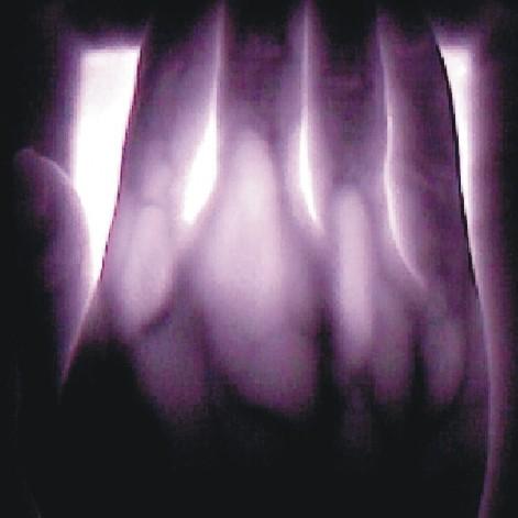 生体組織は、人間の眼で捉えることができる可視光を吸収するため、肉眼で身体の中を見ることはできません。レントゲンが発見したX線は、可視光と同じ電磁波の一種ですが、生体組織をよく透過し、脂肪、筋肉、骨などの組織の違いによって吸収が異なることから、身体を切らずに内部の構造を見ることができます。このことから、X線撮影は医療診断に欠かせないものとなっています。可視光よりも波長が長い近赤外光は、X線ほどではありませんが、生体組織を透過します。図1は、手に近赤外光を照射して、透過像を撮影したものです。指の中央部分が明るく、近赤外光が骨を透過していることが分かります。一方、様々な太さの黒い線は血管であり、これは近赤外光が血液で吸収され、血管部分で透過光の強度が減衰しているためです。