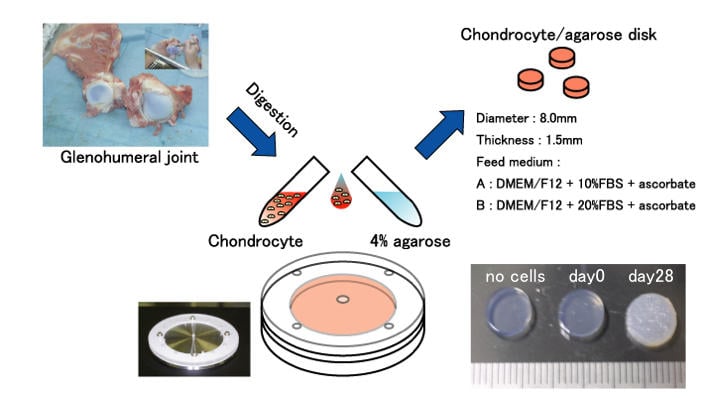 さて、ここまで記述した内容では機械工学科に所属する筆者がなぜ「再生医療」に関わる研究を行っているのか不思議に思われるかもしれません。機械工学科では自動車、ロケット、エンジンなどの開発に携わるイメージが強いのではないでしょうか。しかし、生物もタンパク質など有機物が主体ではありますが構造体で成り立っている「機械」と捉えると、機械工学の視点からも再生医療へのアプローチがあることをご理解いただけると思います。特に私が携わってきた関節軟骨の再生では機械工学的なアプローチがとても役に立ちます。