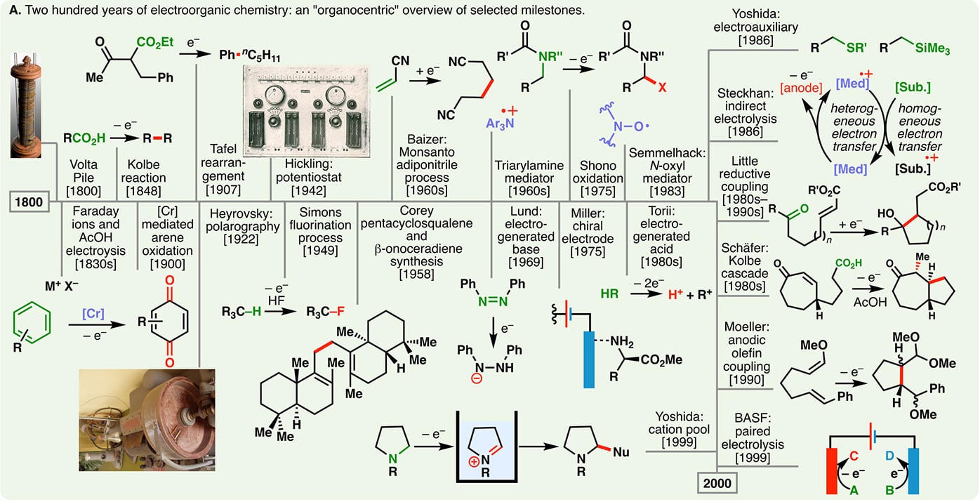 最後に、有機電気化学の過去・現在・未来に触れてこのコラムを結びたいと思います。1800年のボルタ電堆の発明によって幕を開けた有機電気化学は、200年の月日をかけて有機合成化学に多くの発展をもたらしてきました。そして現在、持続可能な社会の発展を支える化学「グリーン・サスティナブルケミストリー」の観点から、環境にやさしいモノづくりを可能とする有機電気化学(有機電解合成)の分野はルネサンスを迎えています。この潮流を単なるブームで終わらせることがないよう、微力ながら有機電気化学と真正面に向き合って研究を進めていきたいと考えています。