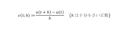 に着目しますが、𝒽 の取り方の不定性を排除するために、𝒽 を0に近づけたときに 𝓋(𝓉;𝒽) が限りなく近づくであろう値をもって速度 𝓊'(𝓉) を定義します